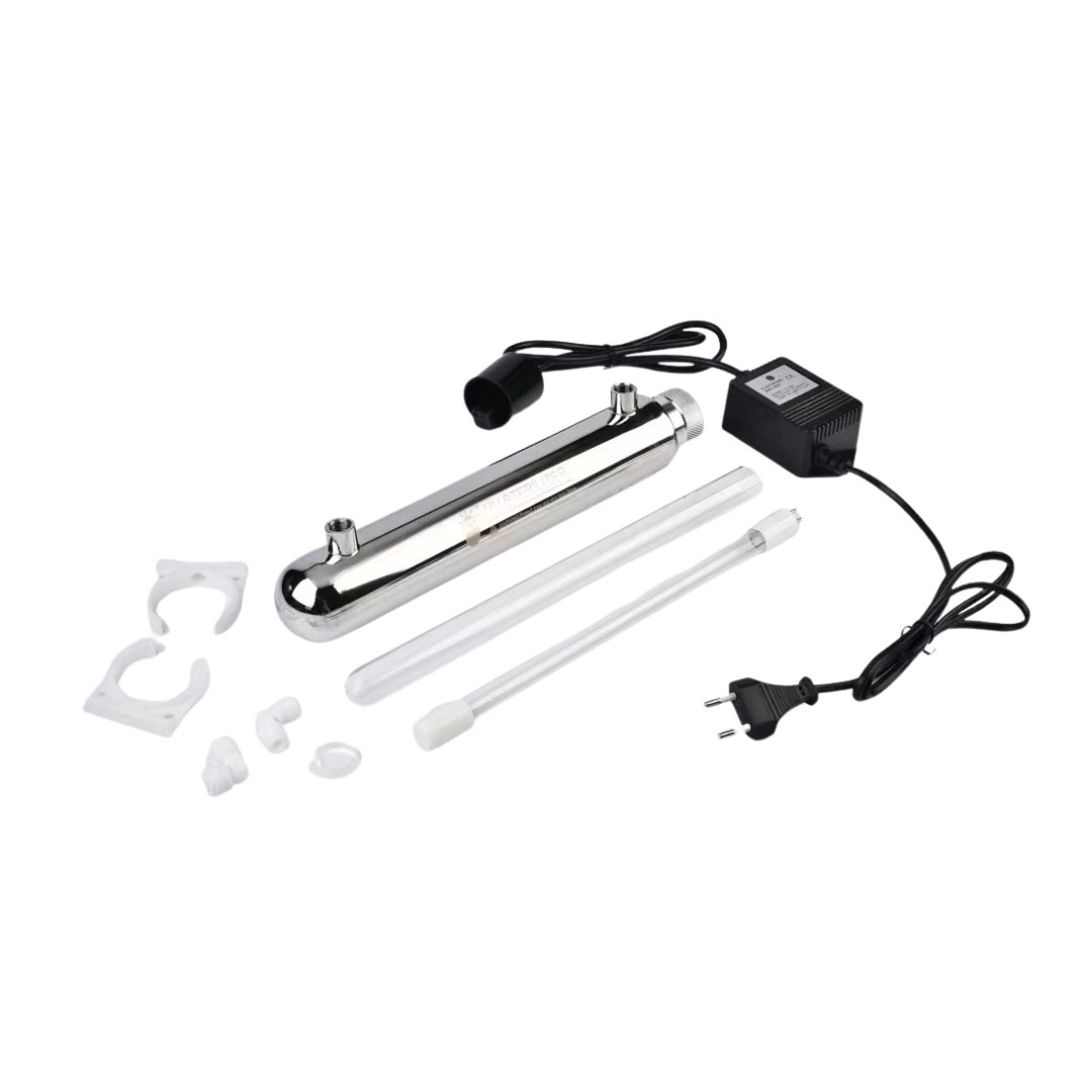 Đèn UV diệt khuẩn là thiết bị quan trọng trong hệ thống lọc nước, có chức năng tiêu diệt vi khuẩn, virus và vi sinh vật gây hại bằng tia cực tím (UV). Nước sau khi đi qua màng RO sẽ được khử trùng bằng đèn UV, giúp đảm bảo nước sạch tuyệt đối, an toàn cho ăn uống và sản xuất.